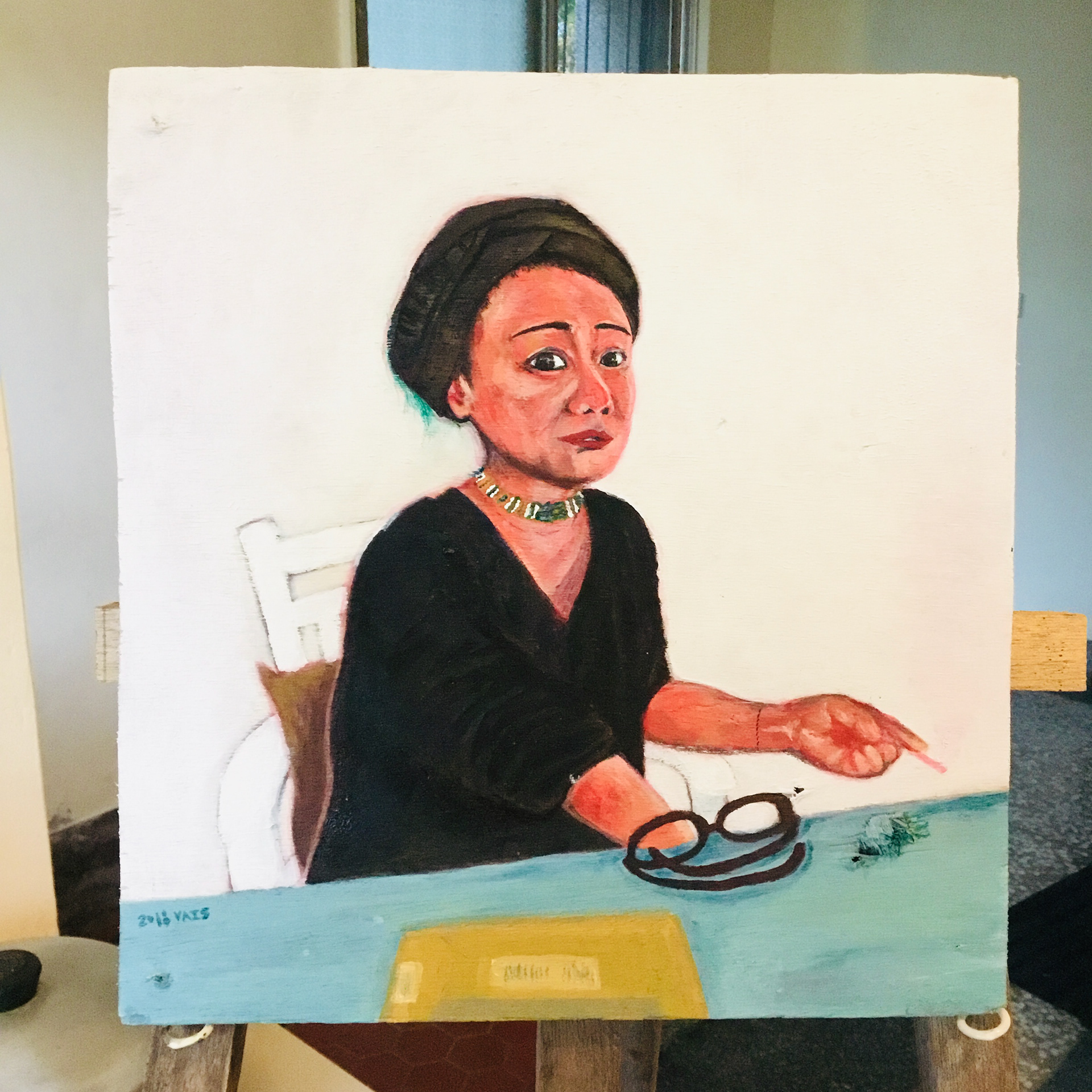 《Sister A-Man》, 460mm*482mm, Acrylic, Color Pencils, Discarded Building Panels, 2018, Tshuà Puē-Iông.